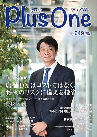 ティグレ連合会 会報誌 2025/11/26 会報誌「PlusOne」2025年11・12月号が発行されています ティグレ会報誌「PlusOne」2025年11・12月号(通巻649号)が発行されています。 本号の巻頭インタビュー「FOCUS ONE」では、株式会社USEN(U-NEXT.HD)代表取締役社長 貴舩靖彦氏にお話を伺いました。また、上田良子ティグレ連合会理事長インタビューも掲載しています。さらに下請法改正のポイントや、夢ひと企業in堺(株式会社ゼルフィス様、勇真工業様)、先見創新「杉原千畝」、WEBサービスMyTigreの案内など充実の内容です。毎回好評の読者プレゼント企画もございます。ぜひご一読ください。 ティグレグループのサイトにてWEBブラウザでもご覧いただけます。 「PlusOne」のページはこちらです。(新規タブで開きます。)